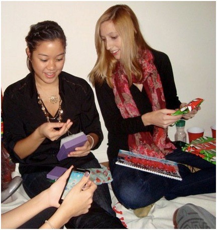 That December, the group of friends, all freshmen Communications majors at BU, chose to begin a holiday tradition to help ease their end-of-semester stresses. As Erika recalls, “We decided to start a Secret Santa gift exchange — to get our mind on the holidays and off of exams! We did it the old-fashioned way our first year, literally drawing names out of a hat.”